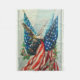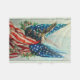 Ilustracion victoriano de tres banderas americanas con águila y rosas.