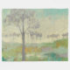 Base de árbol II de Jennifer Goldberger. Presenta árboles de colores apagados en un fondo verde.