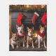 Una escena encantadora capta la esencia de la comodidad y el espíritu de las vacaciones mientras los compañeros peludos adornados en gorras de Santa Claus se reúnen alrededor de una chimenea chocante. La calidez de la chimenea crea un ambiente acogedor para estos adorables caninos, mientras que las medias festivas cuelgan al fondo, lo que crea un ambiente alegre. El encantador ilustracion retrata una imagen atemporal de la compañía y la alegría festiva, perfecta para celebrar la temporada navideña con un toque de encanto canino.