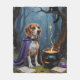 Entrar en una mágica noche de Halloween con esta pintoresca pintura al óleo con un adorable cachorro vestido con un mini manto de bruja, sentado al lado de un caldero burbujeante en un oscuro bosque. Rodeada de pociones brillantes, antiguos libros de ortografía y brillantes chispas mágicas, la escena está llena de misterio y encanto. Las ricas texturas de pintor y los profundos tonos de Halloween crean una acogedora atmósfera encantada perfecta para los amantes de la temporada espeluznante.