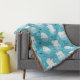 Playful polar bears in Santa hats float on icy blue seas surrounded by igloos, fish, and snowflakes. A cool Christmas favorite.