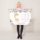 Un diseño dulce para la bebé. Con una tierna jirafa de color agua y flores rosa bonito esta manta hito puede ser personalizada con tu texto.