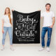 Nuestra elegante y acogedora manta de temporada incluye la famosa cita de la canción "Baby it's Cold Outside", famosa por ser un diseño de escritura moderna y blanca con copos de nieve y acentos de estrellas. Incluye el texto del nombre del monograma de la familia de personalizados que se puede personalizar con su apellido. El fondo negro se puede personalizar para que se coordine con la decoración de tus vacaciones.