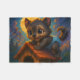 En esta colorida pieza de arte monstruoso de "contenido generativo", un lindo cachorro bebé de hombres lobo de ojos grandes se está divirtiendo trepando en una casa de perros en el patio trasero. Una manera colorida y divertida de llevar tus libros y dulces de perro.