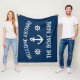 Bienvenido a bordo del barco nombre de la manta de lana azul marino ancla náutica. Haz tu propia manta de personalizado para casa, yate, casa de lago, tienda, etc. Diseño azul y blanco de la marina con símbolos marítimos incluyendo ruedas de un barco viejo y anclas de barcos. Navidades de Guay o idea de regalo de cumpleaños para marinero, capitán de barco, aficionado a la vela, pescador, padre, amigos o familia. Disponible en pequeñas, medianas y grandes.