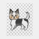 El original ilustracion personalizado de Destei de una linda raza Biewer Terrier / Biewer Yorkshire Terrier. El fondo tiene un patrón de huellas de perros grises.