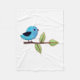 Bird Blue Gingham Baby Bird con Embroidery Leaves Fleece Blanket. Un adorable pajarito con hojas estampadas de bordado.