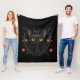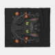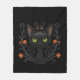 Black Cat Filigree / Quilling style design fleece blanket / throw featuring a Black Cat with large green eyes surrounded by flourishes and flowers.