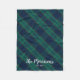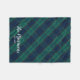 Acurrucarse en esta acogedora manta de lana con su nombre, año establecido (u otro texto personalizado) puesto contra un patrón de manto de reloj negro azul y verde. Perfecto como vacaciones, boda o regalo diario.