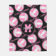Esta manta de pulpa adorable con temática de voleibol presenta un patrón espejado de bolas de voleibol con paneles rosas y blancas y el texto deportivo "Amo el voleibol" en rosa que se extiende entre las filas angloradas de bolas de voleibol - el nombre del atleta y el monograma se pueden personalizar en la gran pendiente de círculo - fondo es negro personalizable - borrar fácilmente las líneas de texto "Amo voleibol", si lo desea o lo desea, reemplace el monograma por la letra de varsity del jugador o el número jersey - por katz_d_zynes
