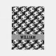 El fútbol se divierte el tema, modelo combinado blanco y negro de los balones de fútbol en fondo negro. El color negro se puede cambiar a cualquier color a la decoración del partido. Nombre personalizado en el negro, estilo retro atlético en una tira gris de la cinta. Regalo lindo, de encargo de la ducha del bebé, regalo para los jugadores de fútbol, regalo por adolescencias, o regalo para el muchacho de recién nacido.