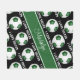 Esta divertida manta para chicas con temática de fútbol presenta la imagen realista de una pelota de fútbol que tiene paneles verdes y blancos con un ángulo con la frase de letra deportiva "I LOVE SOCCER" en blanco que se extiende entre las filas anguladas de bolas de fútbol - personalice su nombre con un sofisticado tipo de letra manuscrita en una franja de color verde chunky de similar ángulo - el fondo es personalizable negro - por katkatkatkatk z_d_zynes