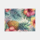 "Bloom Tropical" Un patrón tropical animado y colorido con piñas maduras enclavadas entre las exuberantes hojas verde azuladas de palma y las vibrantes flores de hibisco en tonos rojos, rosas y naranjas. Este diseño capta la esencia de un paraíso tropical, mezclando flora exótica con un ambiente fresco y veraniego.