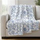 Manta Polar Blue and White Floral Pattern Botanical Boho Chic