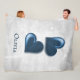 Manténgase caliente en las noches de invierno y otoño con una manta de flores personalizada Blue Hearts. El diseño de la manta presenta un par de corazones, una suave parrilla blanca sobre un fondo gris claro con un área que personalizar con tu nombre. Artículos de regalo adicionales disponibles con este diseño así como una variedad de colores.