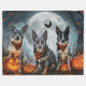 Descanse el espíritu espeluznante con este inquietante diseño de Halloween que presenta una manada de perros bajo un cielo oscuro, iluminado por la luna, rodeados de bates voladores y calabazas brillantes. Perfecto para los amantes de la diversión con sus peludos amigos.