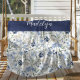 Add your name or monogram to this personalized fleece blanket with a boho wildflower pattern, with delicate dusty blue and navy flowers and sage green leaves on a white background. It would look beautiful in your home, accessorizing your living space to a new heightened look.