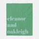 Suave el estilo con esta manta personalizada con tipografía audaz y moderna en tonos suaves contra un fondo verde apacible. Perfecto para parejas, familias o como un regalo atento, esta manta le da un toque acogedor y personal a cualquier espacio vital. Ideal para noches de cine, fines de semana perezosos o simplemente como un tiro decorativo, es una manera versátil y encantadora de celebrar el amor, la calidez y el confort en un diseño minimalista y contemporáneo.