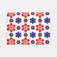 This fleece blanket features a beautiful colorful floral pattern of blue, purple and red stylized daisies against a white background; perfect for adding a touch of retro cuteness to your home.