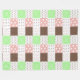Cuidada y caprichosa manta de boho con puntos de polka rosa, malva, marrón, burdeos y verde sabio y rayas. Colores cálidos de tierra.