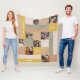 Funda floral de faux quilt personalizada con 8 fotos y texto editable. Creado con flores pintadas a mano y botánicos dispuestos en patrones de inspiración vintage en amarillos, rosados, grises y verdes. Perfecto para regalar. Arte original de Leslie Larson.