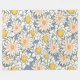 Gráfica suave en estilo retro moderno, estampado floral en azul, blanco y amarillo para la decoración casera.