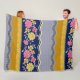Manta Polar Borde floral Fondo azul Zig Zag Patrón