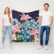 Manta Polar Borde horizontal floral. Lilies y delfinos,