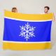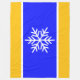 Este festivo diseño de temporada invernal presenta un gran copo de nieve nórdico blanco centrado en anchas rayas centrales de color azul real y blanco con bordes naranjas amarillos.