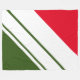 Este diseño moderno y elegante presenta tres bandas de carreras paralelas de ancho blanco diferentes contra el verde del bosque y el rojo brillante.