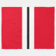 Este elegante diseño deportivo presenta una franja central vertical blanca dividida con una franja negra delgada, enmarcada con audacia en un fondo rojo brillante.