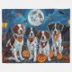 Descanse el espíritu espeluznante con este inquietante diseño de Halloween que presenta una manada de perros bajo un cielo oscuro, iluminado por la luna, rodeados de bates voladores y calabazas brillantes. Perfecto para los amantes de la diversión con sus peludos amigos.