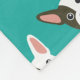 Cuidada manta de Bulldog francés con un bonito ilustracion de perro y un juego de monografías con el color de fondo que elijas (el color actual es azul acuático, pero se puede cambiar fácilmente el color de fondo). Perfecto para una cómoda siesta junto a la chimenea con su perro.