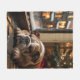 A heartwarming holiday scene featuring a dog sitting peacefully beside a window, surrounded by glowing Christmas lights. This cozy and festive design captures the spirit of the season, perfect for adding warmth and charm to any space. Ideal for dog lovers and holiday decor enthusiasts.