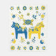 Esta manta de lana tiene un diseño de arte folclórico sueco de un caballo Dala en los colores de la bandera de Suecia, azul y amarillo. También hay flores folclóricas a juego en el mismo color. Puedes hacer que el patrón de fondo de esta manta sea más pequeño o más grande.