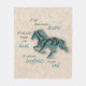 Acogedor en esta Inspiradora manta de una especie de caballo. Cuenta con una silueta de caballo galopante en turquesa, negro y oro y las palabras inspiradoras..."Bailaré en tus sueños" ~ Voy a galopar a través de tu corazón" ~ ¡Voy a plantar huellas en tu alma"! Este es un Diseño de Arte Gráfico Original creado por el artista Kerry Miller.