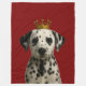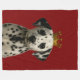Cachorro de la flor de la Corona de Oro en una manta de Ricaso. Un adorable cachorro dálmata con un fondo rojo profundo. Ideal para los amantes de los animales y los perros.