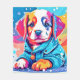 Un diseño de arte colorido y lindo de un cachorro con un abrigo azul (Este diseño hecho con IA). ¡Haga el pedido hoy y acepte la alegría de ir de compras!