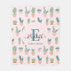 Cactus Cacti Suculento Verde Rosa Monograma Fleece Blanket