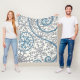 Esta manta de lana muestra una hermosa tormenta de copos de nieve barridos por el viento en gris platino y azul hielo.