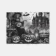 Un inquietante ilustracion blanco y negro de una bruja esquelética con sus calabazas.