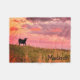 Esta pequeña manta de lana tiene la imagen de un becerro negro al atardecer parado en una colina de hierba con un hermoso cielo nublado encima en tonos naranja, rosa, púrpura y malva. Se personaliza con un nombre en negro en la esquina inferior derecha. Es una forma perfecta para que tu amante de las vacas se acabe a tu lado.