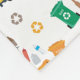 Un lindo patrón de reciclar camiones de basura de colores con papeleras de reciclaje y reciclables. Reciclando camiones de basura verdes, azules, amarillos, marrones y naranjas reciclando papel, plástico, metalizado, vidrio y compost. Perfecto para los amantes de los camiones de basura grandes o pequeños.