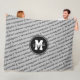 Esta frazada para chicas con temática deportiva de baloncesto muestra el texto "La cancha de baloncesto es mi lugar feliz" en un tipo de letra casual escrito a mano junto con formas cardíacas con estampado negro diagonalmente en un fondo gris medio - personalizado con su nombre y su monograma o carta de varsity en gran pendiente de círculo - fondo, pendant de círculo y color de texto personalizado se puede cambiar a CUALQUIER color que contraste con patrón de texto - katz_d_zynes