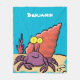Este feliz personalizado de cangrejo ermitaño es un naranja violeta brillante y colorido con un fondo azul. ¡Llévame al mar!