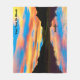 Una canoa cruza un lago montañoso que refleja los hermosos naranjas y azules de una colorida puesta de sol. Añade tu propio texto.