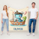 Manta personalizada del capitán de velero pequeño dinosaurio. Imagina un capitán dinosaurio lindo a bordo de un velero encantador. Este diseño cautivador combina la ternura con la aventura, perfecto para inspirar el juego imaginativo y los abrazos.