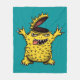 Una loca manta monstruo de pollo sin cerebro con un ilustracion de personaje dibujado con tinta digital en colores verde amarillo y azul.