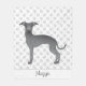 El original ilustracion personalizado de Destei de un lindo color azul Greyhound italiano / perro de raza Iggy. El fondo tiene un patrón de huellas de perros grises. También hay un área de texto personalizable para un nombre u otro texto personalizado.