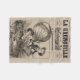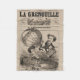 Caricatura francesa de la globalista Camille Dartois en un globo con la etiqueta Hippodrome, y Bradbury, un artista de circo, de pie mientras monta un caballo en el Hipódromo, París.